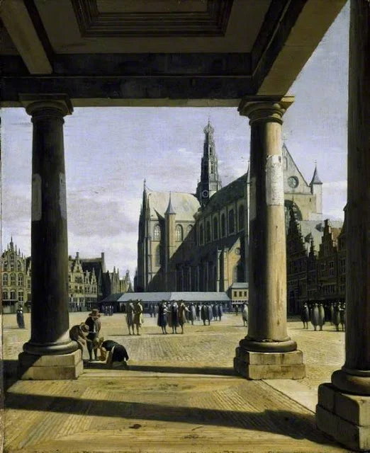 Gerrit Adriaenszoon Berckheyde, The West Front and North Transept of the Groote Kerk at Haarlem seen from Colonnade of the Town Hall, 1674.